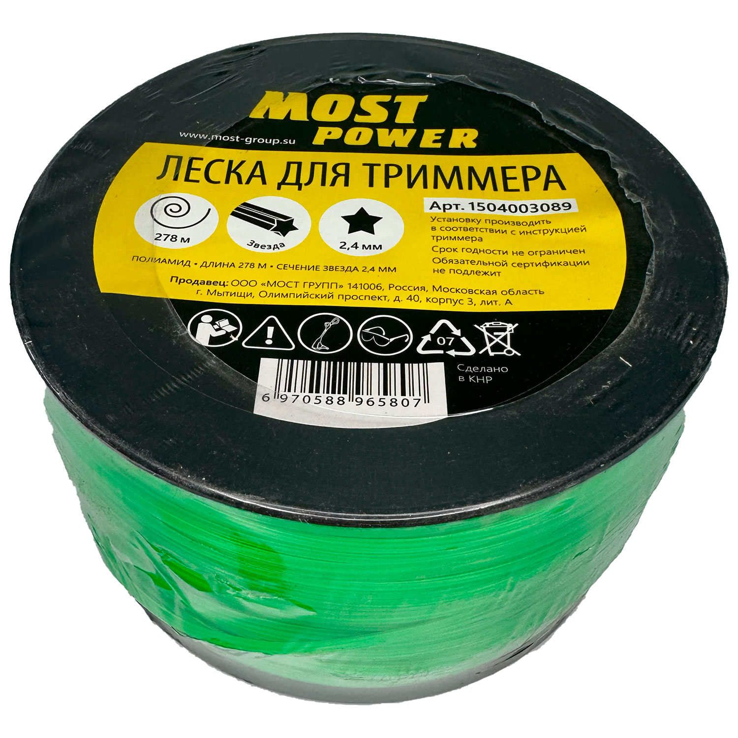 Диаметр лески 2.4 мм; Длина лески 278 м; Сечение - звезда; Цвет - зеленый.