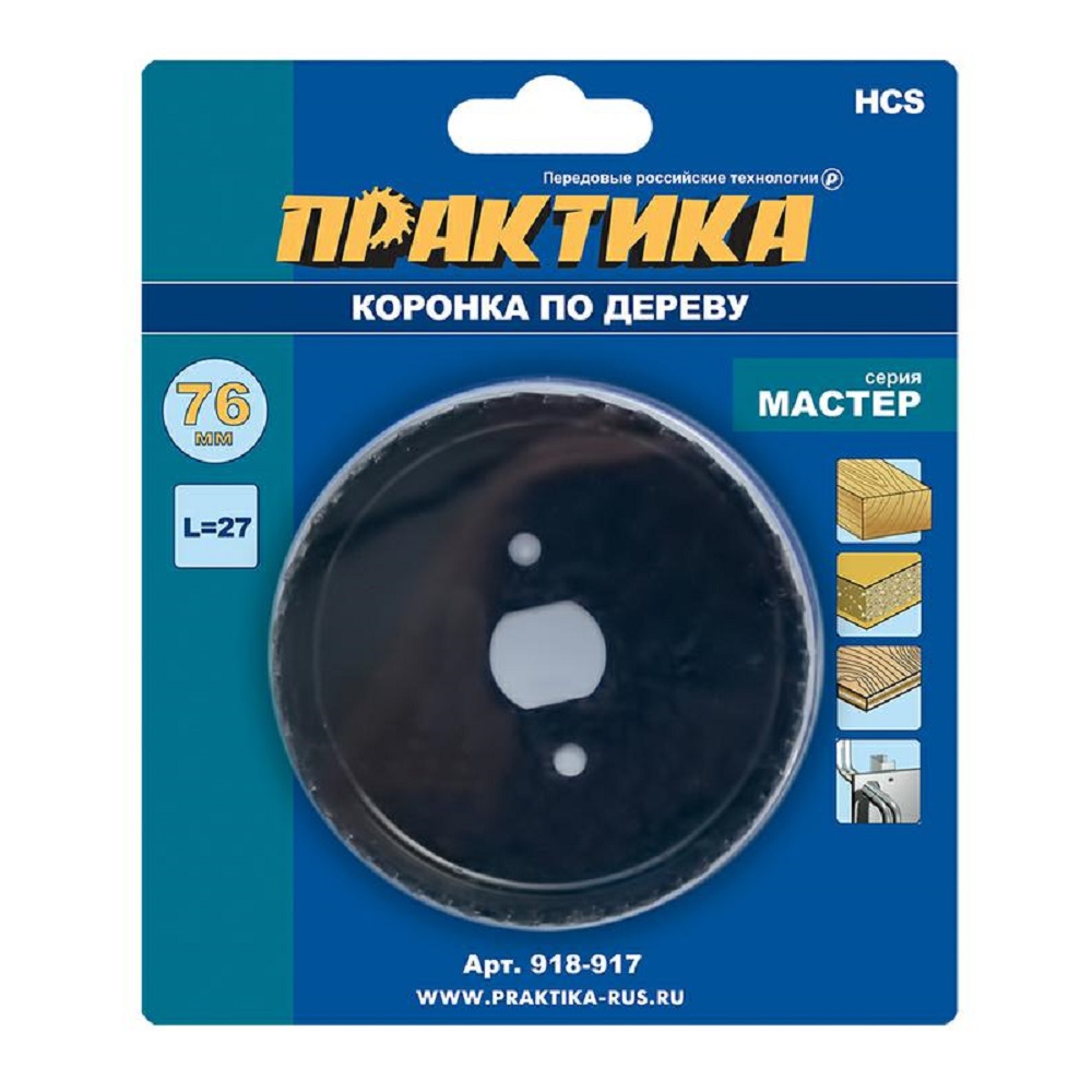 Коронка по дереву Практика "Мастер" 76 мм, L-27мм, без адаптера (1 шт), блистер