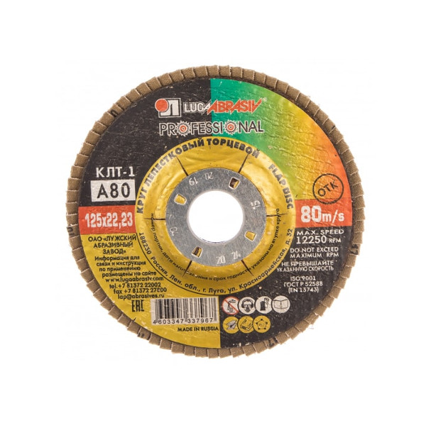 Круг лепестковый Луга лепестковый торцевой 125х22 Р80 ТИП 2