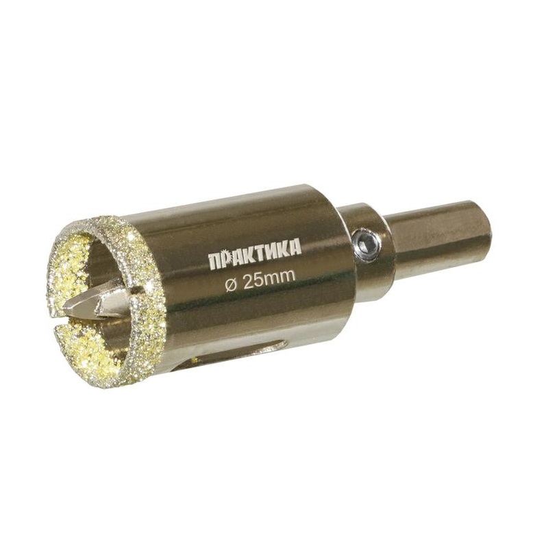 Коронка по керамограниту Практика 25х70мм алмазная пилотное сверло 1шт блистер Профи