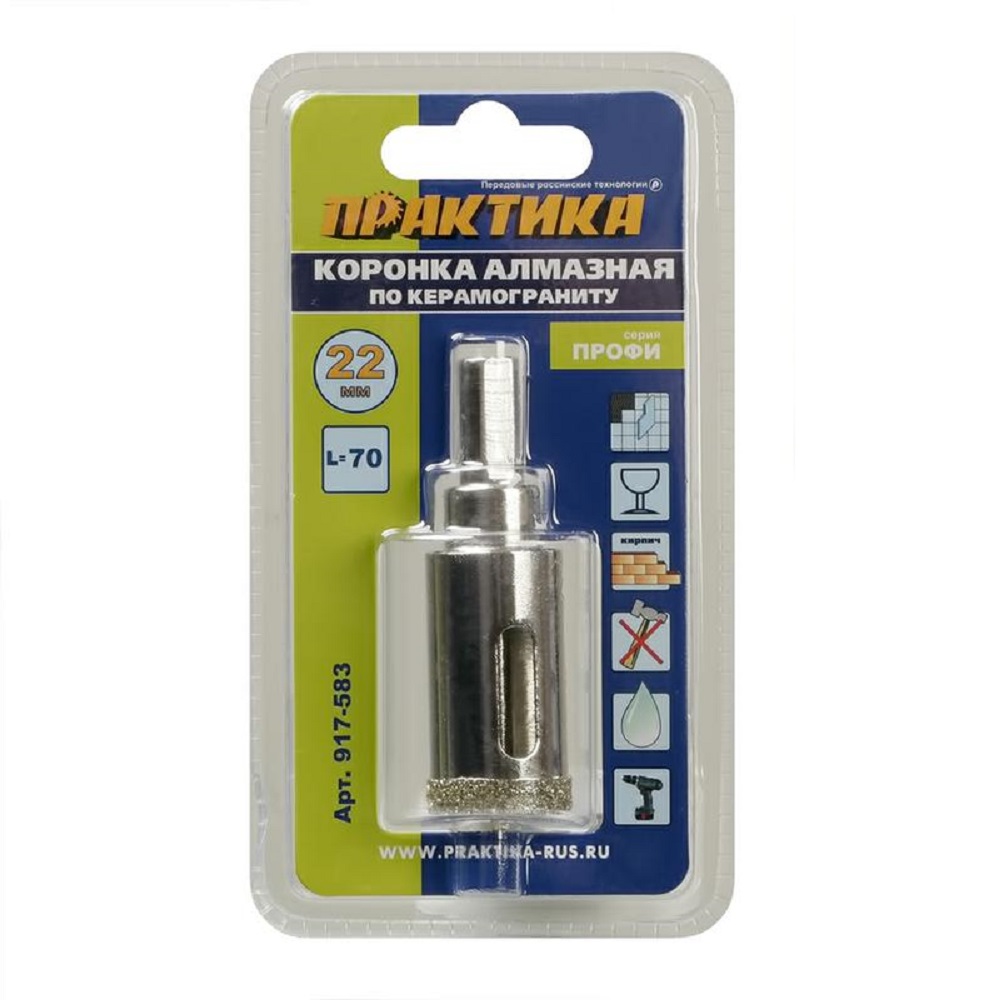 Коронка по керамограниту Практика 22х70мм алмазная пилотное сверло 1шт блистер Профи