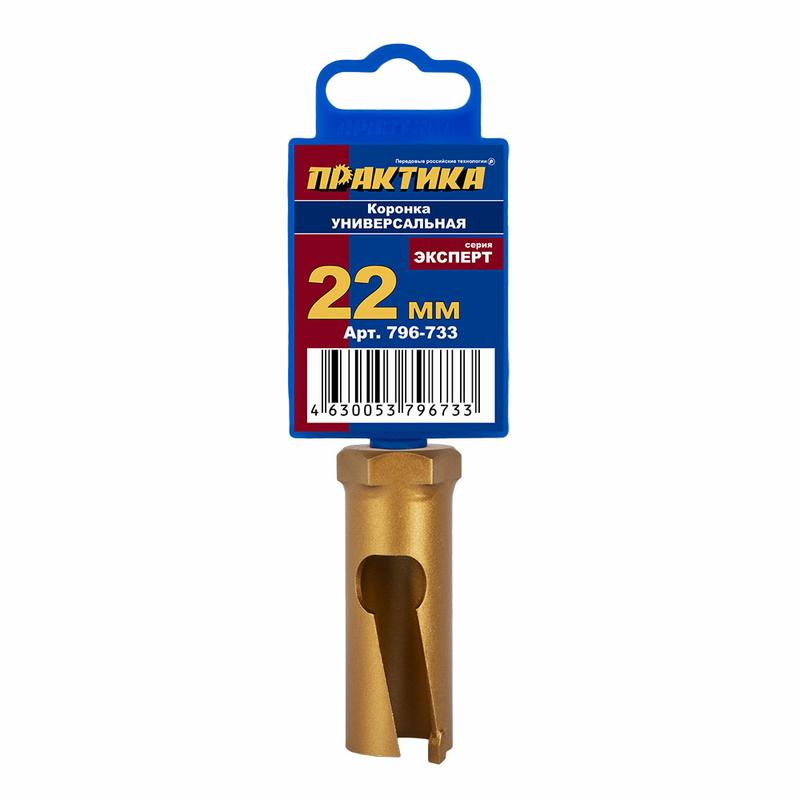Коронка универсальная Практика ЭКСПЕРТ 22мм (дерево кирпич бетон керамзит гипсокартон фанера) твердосплавная