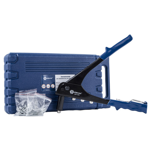 Заклепочник Кобальт 270 мм, заклепки 2,4-3,2-4,0-4,8 мм, кейс