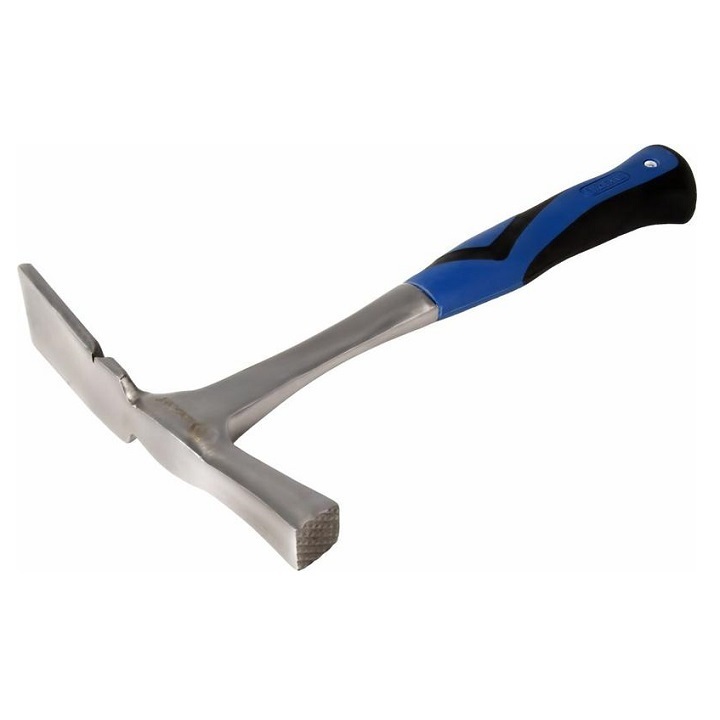 Молоток каменщика 600 гр. применяется при работе с кирпичом, камнем и бетоном. Ударная голова выполнена из закалённой инструментальной стали. Боёк имеет квадратную форму. Носок имеет сужающийся клин удлинённой формы и используется для разрубания камня или кирпича. Цельнокованая рукоятка с прорезиненной вставкой не проскальзывает в руках во время работы. Длина общая 330 мм