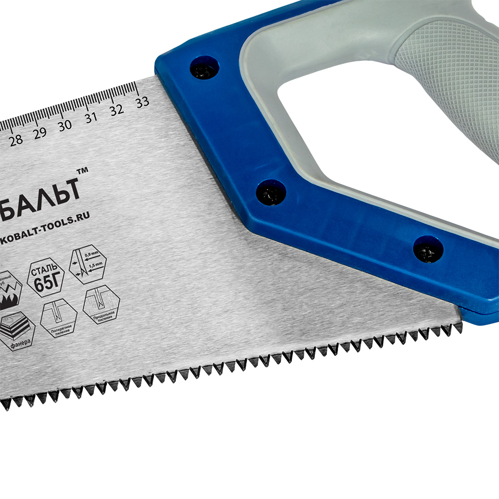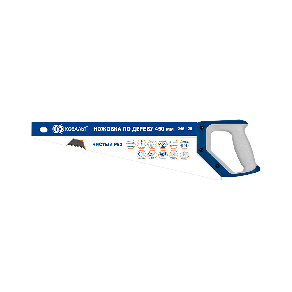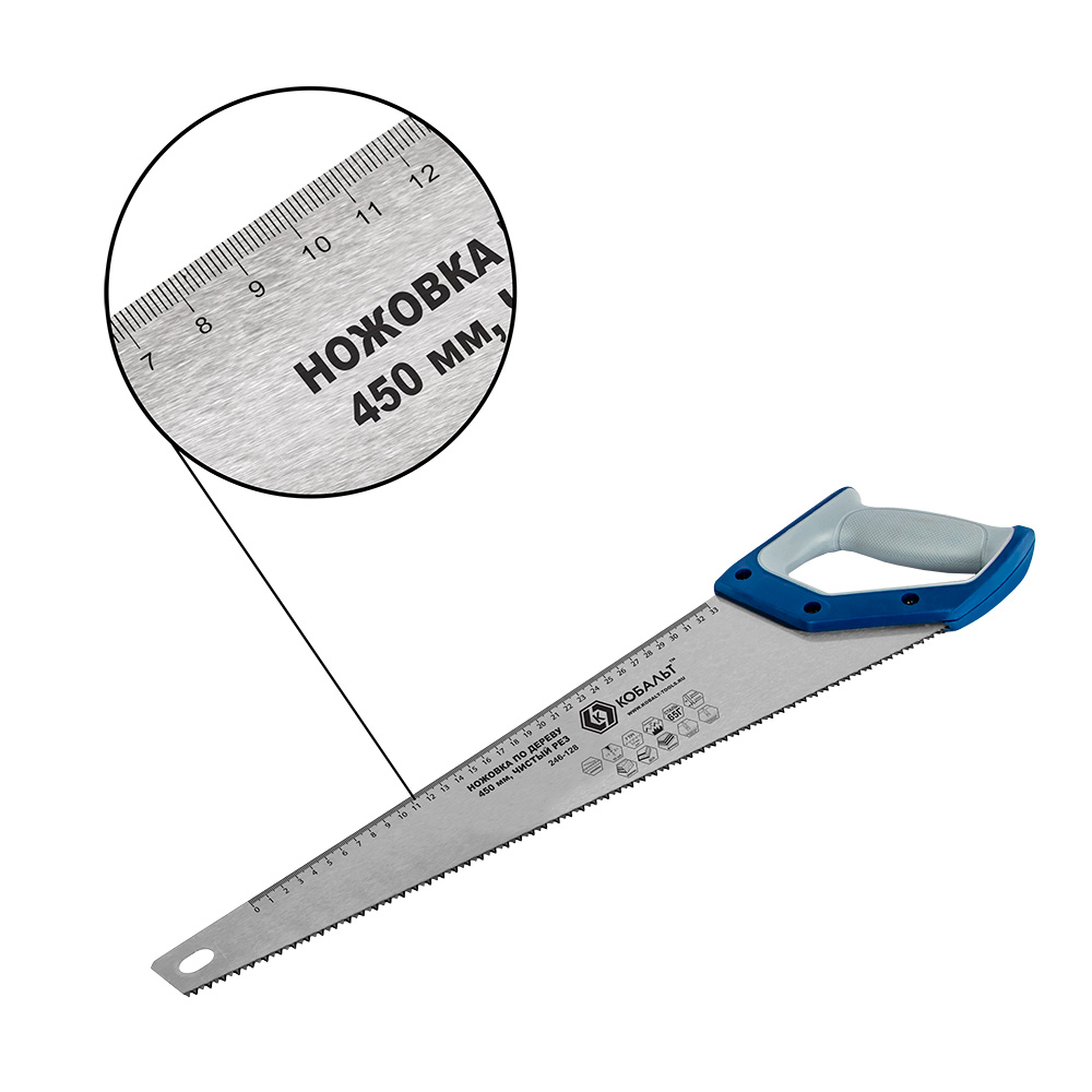 Ножовка по дереву Кобальт 450 мм, шаг 3,5 мм/ 7 TPI, закаленный зуб,3D-заточка, двухкомпонентная рукоятка, чистый рез