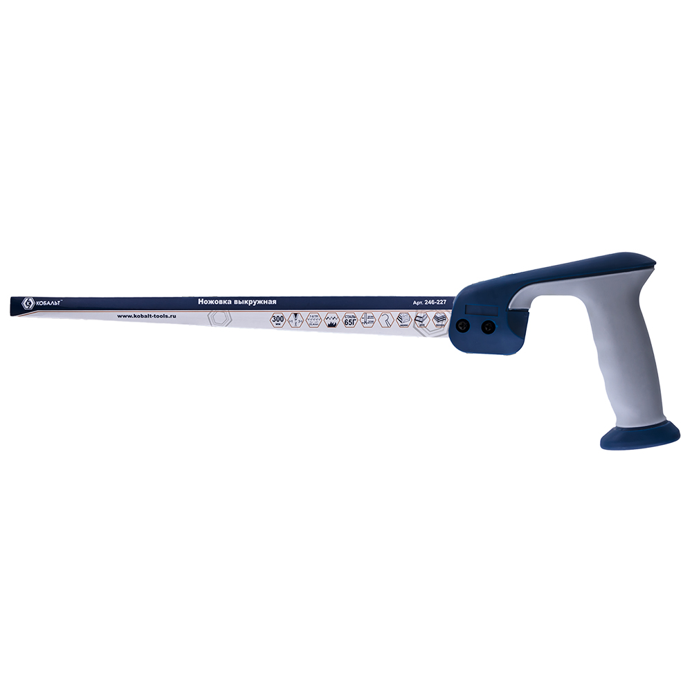 Ножовка 300 мм выкружная КОБАЛЬТ предназначена для пиления дерева, пластика и гипсокартона. Двухкомпонентная рукоятка не проскальзывает в руках во время работы. Поверхностная закалка режущей кромки зуба способствует сохранению заточки длительное время. 3D-заточка позволяет более эффективно разрезать материал. Узкое полотно позволяет вырезать отверстия