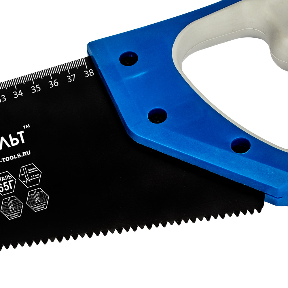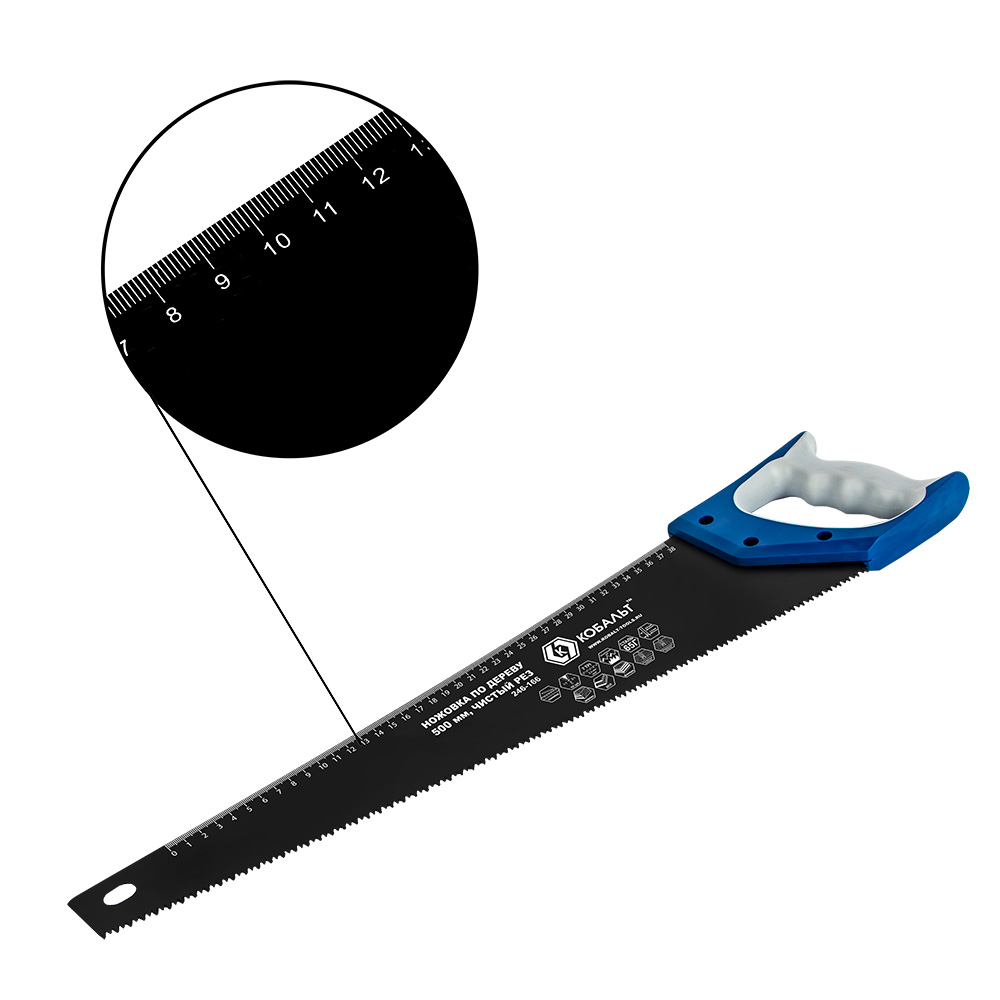 Ножовка по дереву Кобальт 500 мм, шаг 3,5 мм/ 7 TPI, тефлоновое покрытие, закаленный зуб, 3D-заточка, двухкомпонентная ручка, чистый рез