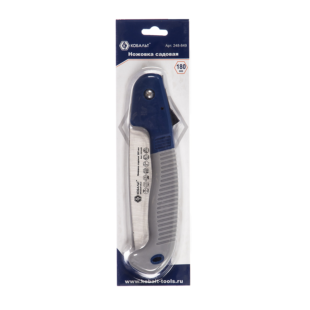 Пила садовая Кобальт 180 мм, шаг 3.5 мм/ 7 TPI, закаленный зуб,3D-заточка, двухкомпонентная рукоятка, складная