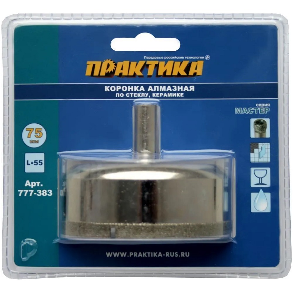 Коронка алмазная Практика Мастер по стеклу и керамике 75 мм (1шт) блистер