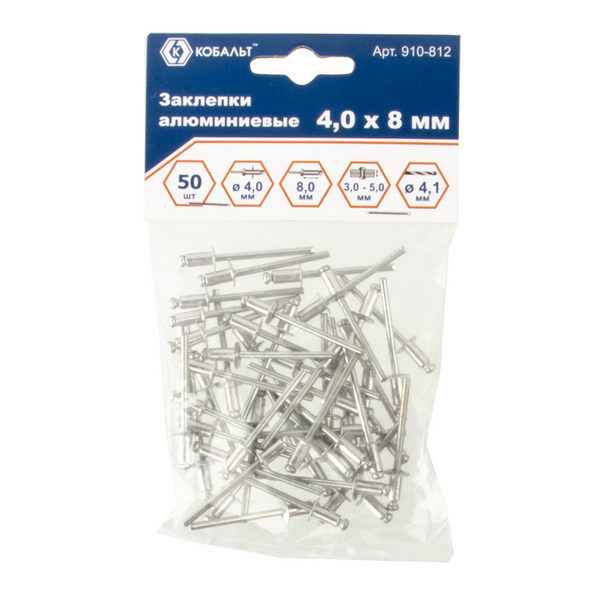 Кобальт Заклепки алюминиевые, 4,0 х 8 мм (50 шт.) пакет