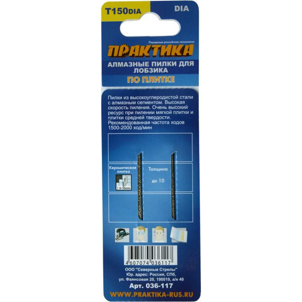 Пилки по керамике Практика тип T150DIA 76 х 50 мм, чистый рез, АЛМАЗНЫЕ (2шт.)