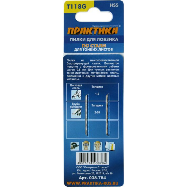 Пилки по металлу Практика тип T118G 76 х 50 мм, чистый рез, HSS (2шт.)76 х 50 мм, чистый рез, HSS (2шт.)