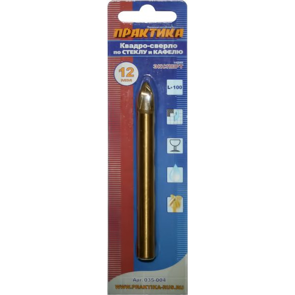 Сверло по стеклу и керамике Практика "Эксперт" Квадро 12 х 100 мм (1шт.) блистер