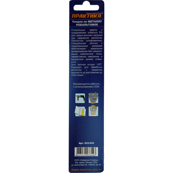 Сверло по металлу Практика 8,0 х 117 мм Р6М5К5, (1шт.) блистерР6М5К5, (1шт.) блистер