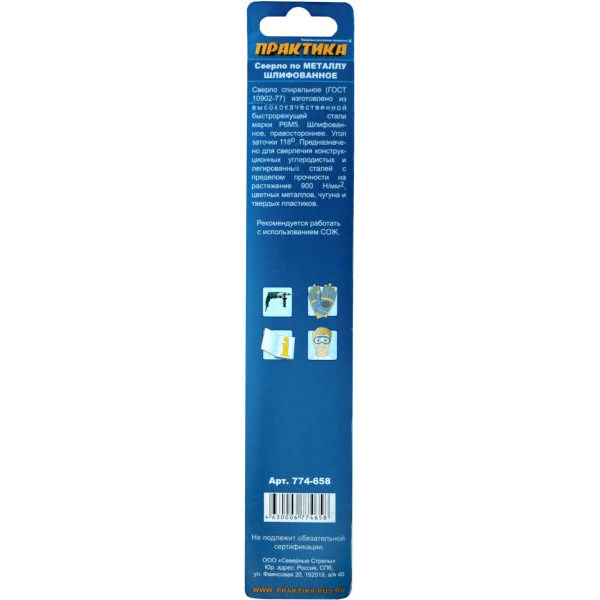 Сверло по металлу Практика Р6М5 16,0 х 178 мм, хвостовик 13 мм, (1шт.) блистер хвостовик 13 мм, (1шт.) блистер