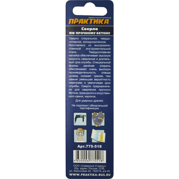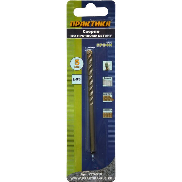 Сверло по бетону Практика 5 х 95 мм (1шт.) блистерсерия Профи