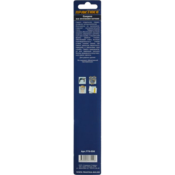 Сверло по бетону Практика 12 х 220 мм (1шт.) блистерсерия Профи
