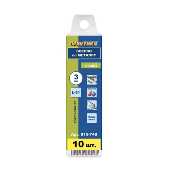 • Сверло по металлу 3,0х61мм Р6М5 10шт-пластик упак