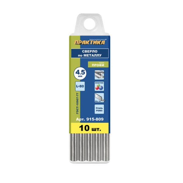 • Сверло по металлу 4,5х80мм Р6М5 10шт-пластик упак