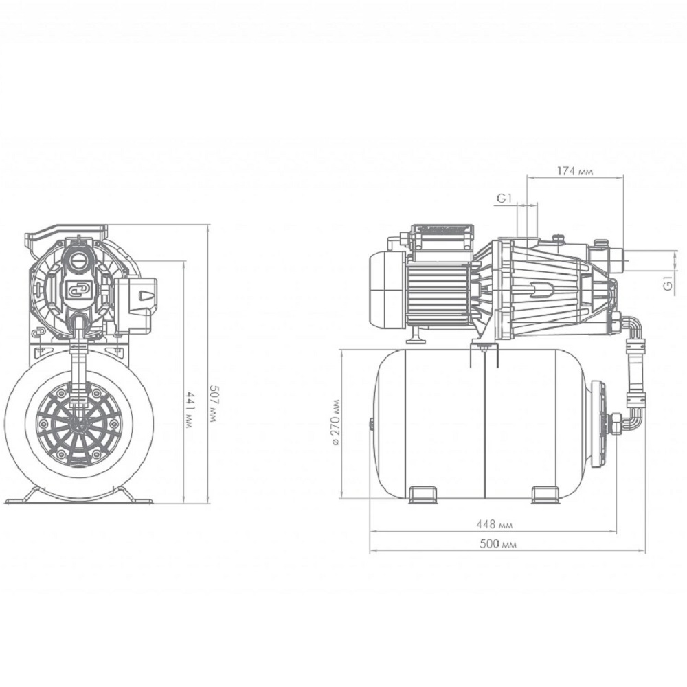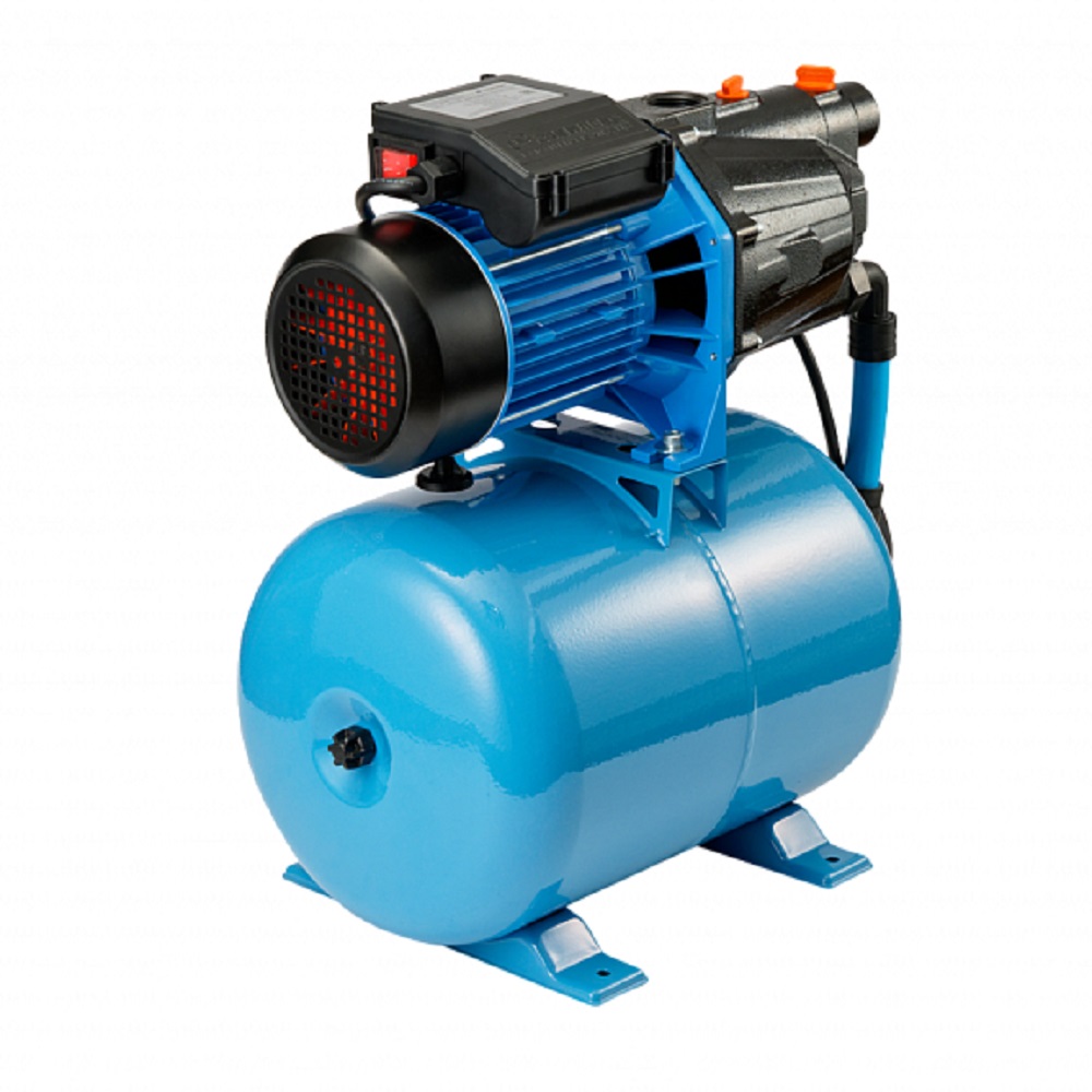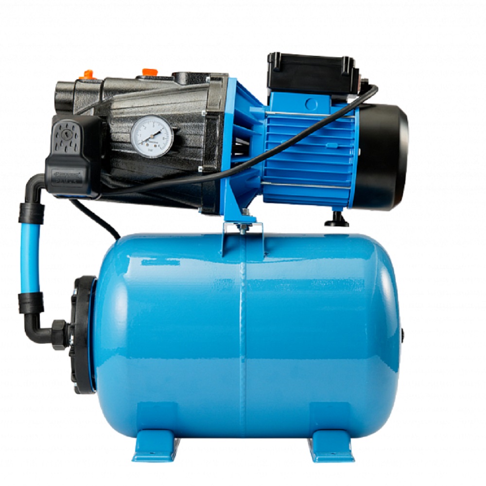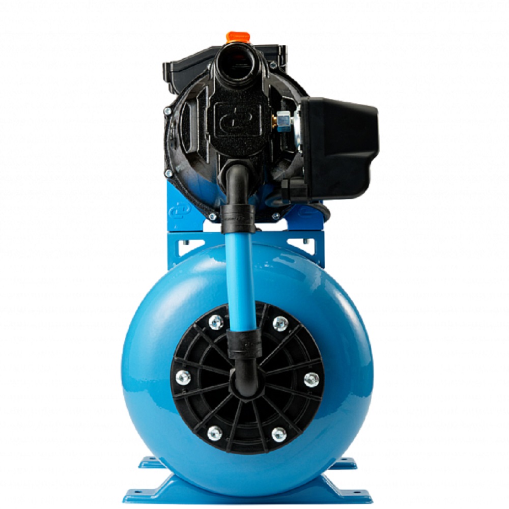Насосная станция «ДЖАМБО» 70/50 Ч-24 (2.0) создана для автоматизированной подачи чистой воды из разных источников, также может быть использована для повышения давления при использовании в качестве источника магистрального водопровода. Область применения Насосную станцию можно использовать как часть системы автоматического водоснабжения в частном доме. Забор воды может осуществляться из: открытых водоемов; колодцев и скважин; централизованного водопровода. Характеристики модели «ДЖАМБО» 70/50 Ч-24: «ДЖАМБО» — название серии; 70 — максимальный расход воды при свободном изливе в л/мин; 50 — максимальный напор в метрах водяного столба; Ч — материал, из которого изготовлен корпус (чугун); 24 — объем гидроаккумулятора в литрах. Преимущества модели «ДЖАМБО» 70/50 Ч-24: Наличие заливного отверстия и отверстия для выхода воздуха с резьбовыми заглушками позволяет быстро заполнить водой насосную часть и избежать образование воздушных пробок, что облегчает первоначальный запуск насоса. В процессе залива вода сразу попадает в диффузор, корпус и всасывающую магистраль. Заменена соединительная арматура между насосом и гидроаккумулятором на шланг из сшитого полиэтилена с накидными гайками. Облегчает монтаж и замену гидроаккумулятора. Новая конструкция гидравлической части снижает риск возникновения воздушных пробок при работе. Наличие гидроаккумулятора позволяет защитить насос от частых пусков, тем самым увеличивая его срок службы. Он же позволяет поддерживать давление в системе, что обеспечивает бесперебойное водоснабжение потребителей в тот момент, когда насос отключается. Кроме поддержания давления в системе водоснабжения гидроаккумулятор позволяет предотвратить гидроудар. Встроенная тепловая защита. Функцию защиты от перегрева выполняет термопротектор, находящийся в обмотках статора. Как только температура обмоток повышается - электродвигатель отключается. Эксплуатационные ограничения для насосных станций «ДЖАМБО» Запрещается: Заужение внутреннего диаметра всасывающей магистрали. Превышение максимальных значений, зафиксированных в инструкции по эксплуатации. Использование для подъема воды с глубины более 9 м. Работа насоса-автомата без расхода воды. Попадание воздуха во всасывающую магистраль. Установка в помещениях, в которых существует риск затопления. Эксплуатация при температуре окружающей среды ниже 0°С. Перекачивание воды, температура которой ниже +1°С и выше +35°С. Рекомендуется: Заполнить водой корпус насоса и всасывающую магистраль до обратного клапана при первом запуске. Установить стабилизатор напряжения при нестабильном напряжении в сети. В случаях, когда забор воды осуществляется из колодцев и скважин, ставить обратный клапан в самой низкой точке трубопровода. В случаях, когда насос подключается к централизованному водопроводу, ставить обратный клапан перед входным штуцером насоса на всасывающей магистрали. В качестве всасывающей магистрали рекомендуется использовать современные полиэтиленовые и полипропиленовые трубы. А также комплекты для всасывания на основе шланга с армирующей спиралью.Преимущества