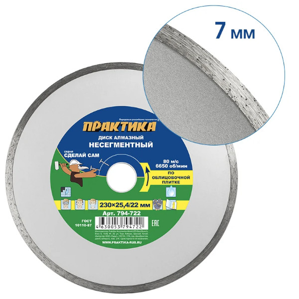 Диск обеспечивает чистые кромки без сколов. Не подходит для керамогранита.