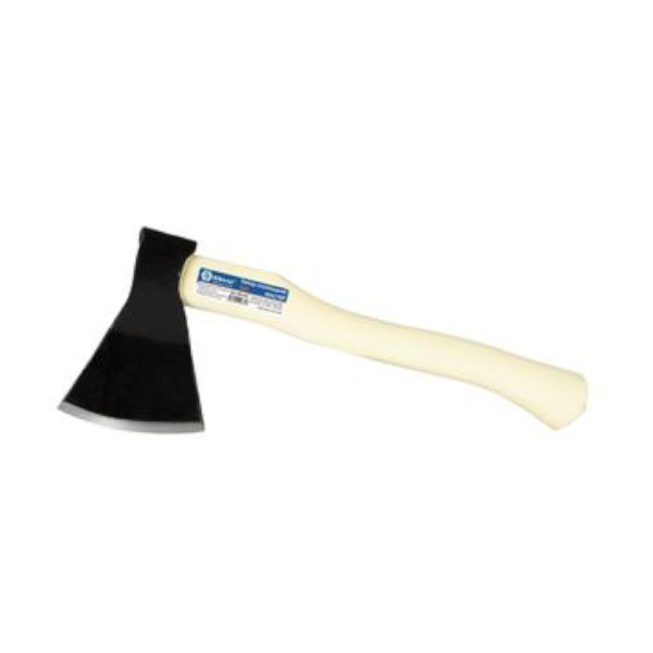 Плотницкий кованый топор  предназначен для рубки и колки разных сортов древесины при проведении плотничных и столярных работ. Изготовлен из конструкционной углеродистой кованой стали, твёрдостью 48-56 HRC. Режущая часть покрыта порошковой краской, предотвращающей появление коррозии. Радиусная заточка. Длина лезвия - 115 мм. Топорище изготовлено из берёзы и упаковано в защитную плёнку.