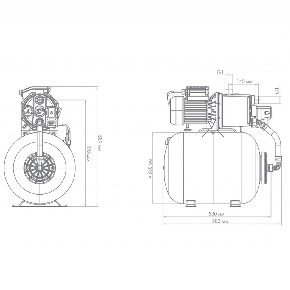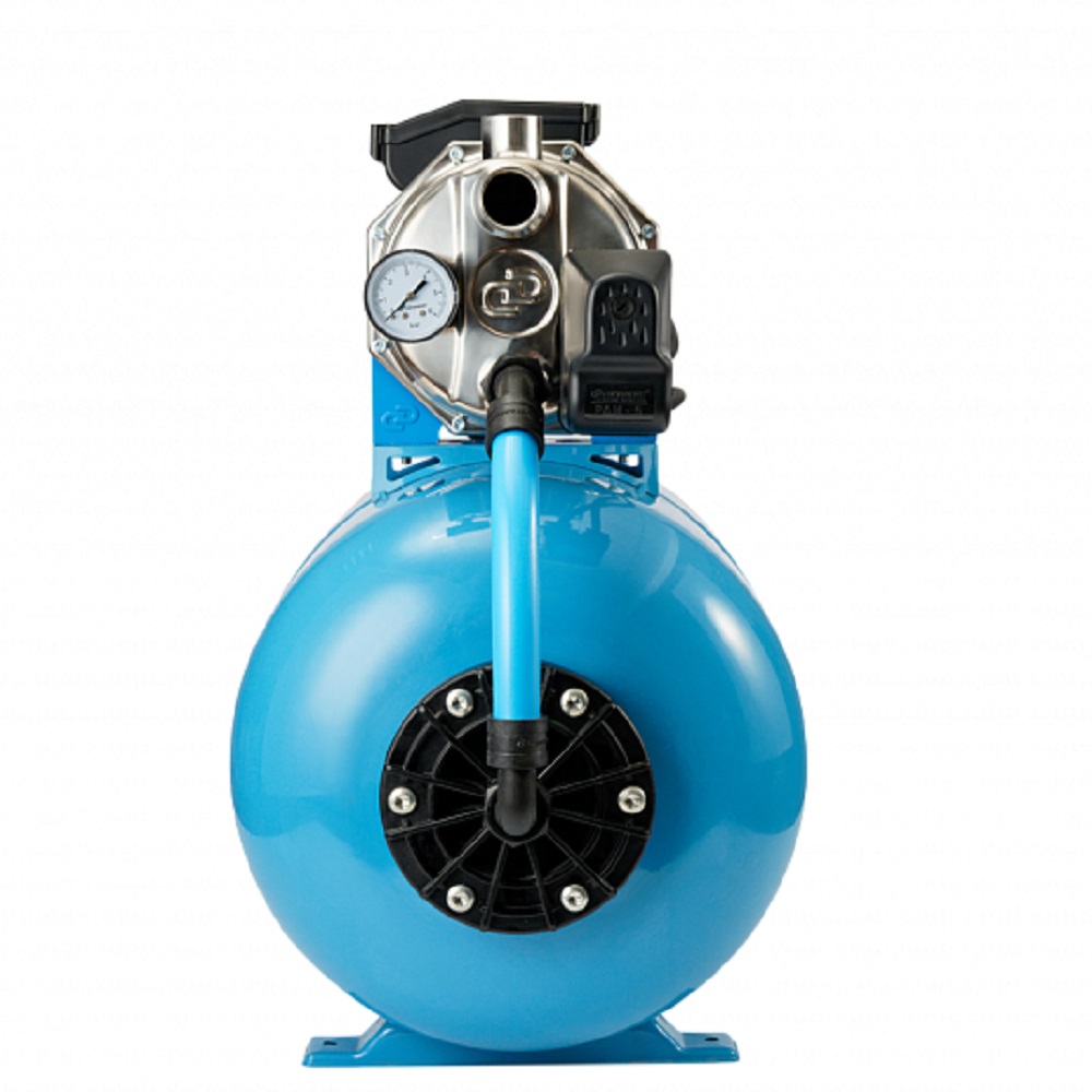 Насосная станция «ДЖАМБО» 70/50 Н-50 (2.0) создана для автоматизированной подачи чистой воды из разных источников, также может быть использована для повышения давления при использовании в качестве источника магистрального водопровода. Область применения: Насосную станцию можно использовать как часть системы автоматического водоснабжения в частном доме. Забор воды может осуществляться из: открытых водоемов; колодцев и скважин; централизованного водопровода. Характеристики модели «ДЖАМБО» 70/50 Н-50: «ДЖАМБО» — название серии; 70 — максимальный расход воды при свободном изливе в л/мин; 50 — максимальный напор в метрах водяного столба; Н — материал, из которого изготовлен корпус (нержавеющая сталь); 50 — объем гидроаккумулятора в литрах. Преимущества модели «ДЖАМБО» 70/50 Н-50 Наличие заливного отверстия и отверстия для выхода воздуха с резьбовыми заглушками позволяет быстро заполнить водой насосную часть и избежать образование воздушных пробок, что облегчает первоначальный запуск насоса. В процессе залива вода сразу попадает в диффузор, корпус и всасывающую магистраль. Заменена соединительная арматура между насосом и гидроаккумулятором на шланг из сшитого полиэтилена с накидными гайками. Облегчает монтаж и замену гидроаккумулятора. Новая конструкция гидравлической части снижает риск возникновения воздушных пробок при работе. Наличие гидроаккумулятора позволяет защитить насос от частых пусков, тем самым увеличивая его срок службы. Он же позволяет поддерживать давление в системе, что обеспечивает бесперебойное водоснабжение потребителей в тот момент, когда насос отключается. Кроме поддержания давления в системе водоснабжения гидроаккумулятор позволяет предотвратить гидроудар. Встроенная тепловая защита. Функцию защиты от перегрева выполняет термопротектор, находящийся в обмотках статора. Как только температура обмоток повышается - электродвигатель отключается. Эксплуатационные ограничения для насосных станций «ДЖАМБО» Запрещается: Заужение внутреннего диаметра всасывающей магистрали. Превышение максимальных значений, зафиксированных в инструкции по эксплуатации. Использование для подъема воды с глубины более 9 м. Работа насоса-автомата без расхода воды. Попадание воздуха во всасывающую магистраль. Установка в помещениях, в которых существует риск затопления. Эксплуатация при температуре окружающей среды ниже 0°С. Перекачивание воды, температура которой ниже +1°С и выше +35°С. Рекомендуется: Заполнить водой корпус насоса и всасывающую магистраль до обратного клапана при первом запуске. Установить стабилизатор напряжения при нестабильном напряжении в сети. В случаях, когда забор воды осуществляется из колодцев и скважин, ставить обратный клапан в самой низкой точке трубопровода. В случаях, когда насос подключается к централизованному водопроводу, ставить обратный клапан перед входным штуцером насоса на всасывающей магистрали. В качестве всасывающей магистрали рекомендуется использовать современные полиэтиленовые и полипропиленовые трубы. А также комплекты для всасывания на основе шланга с армирующей спиралью.Преимущества