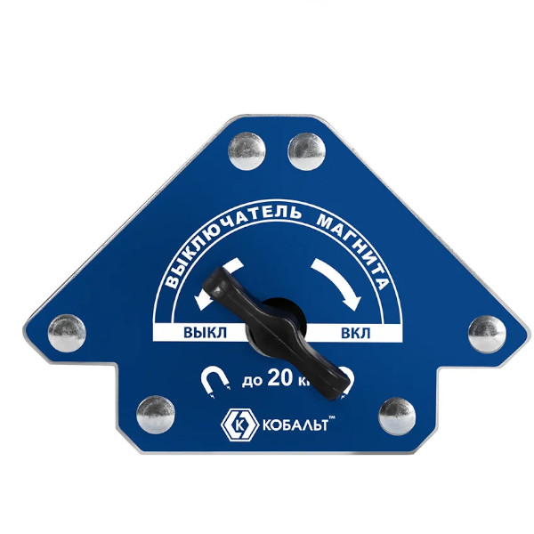 Угольник магнитный Кобальт ОТКЛЮЧАЕМЫЙ для сварки на 3 угла (45, 90 ,135) магнит до 20 кг Стрелка