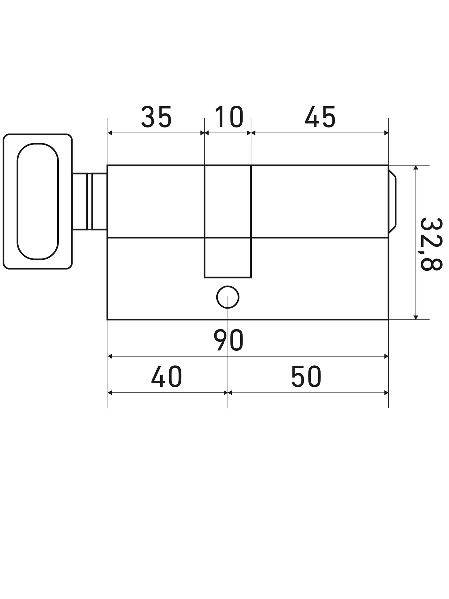 • Механизм цилиндрический МАХ 90 (50х40В) 5кл SN мат никель перф  ключ/вертушка