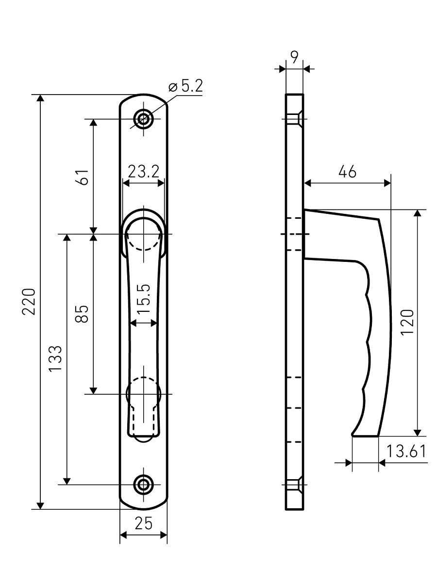 • Ручка для узкопрофильных замков РФ 85.25.01.8017 коричневая м/о 85
