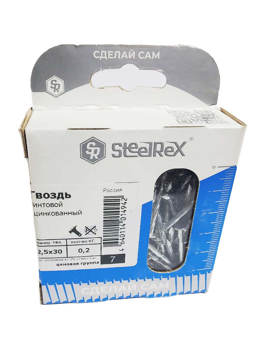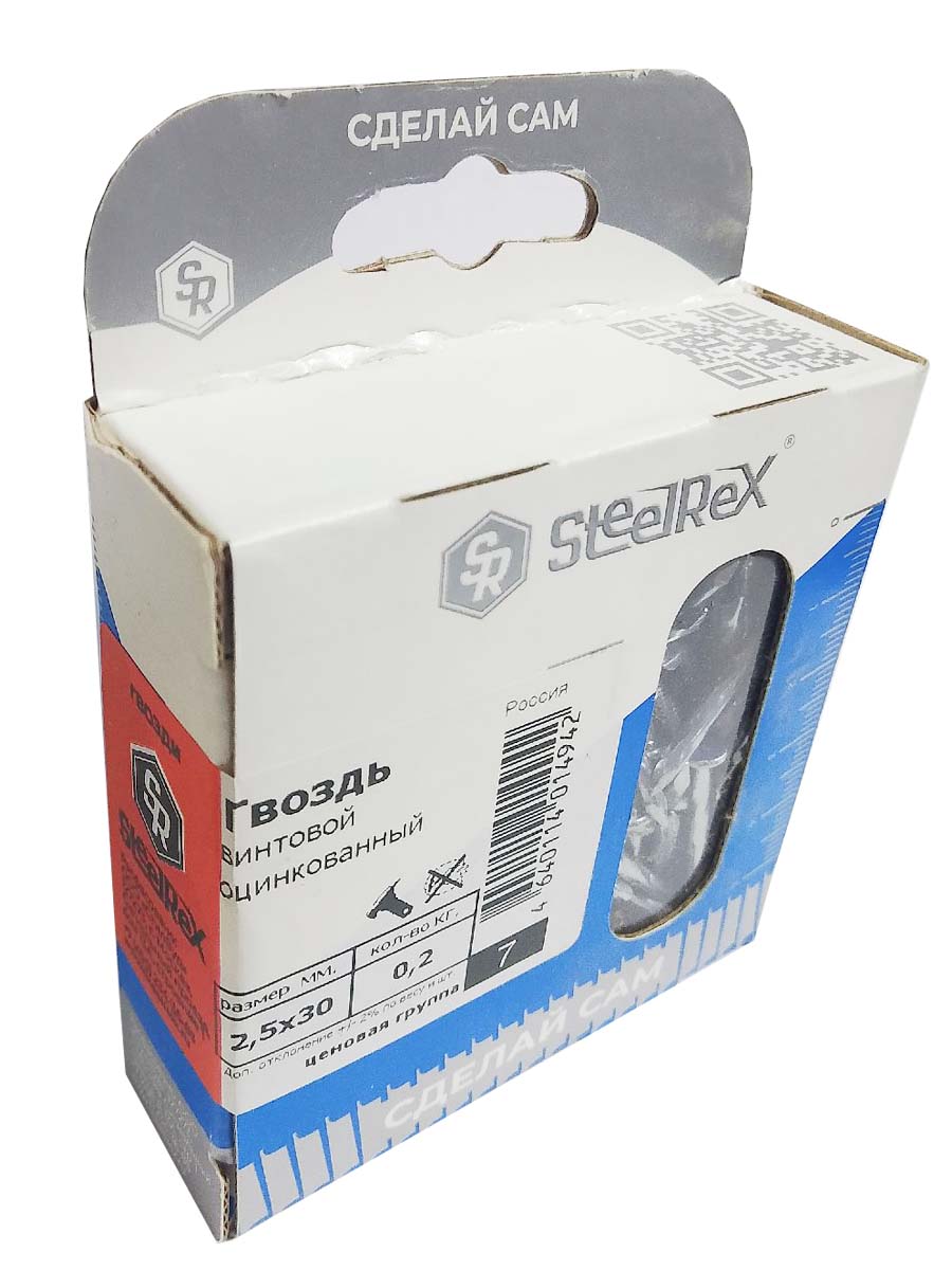 Гвозди винтовые SteelRex цинк 2,5х30  коробка с окном, в упаковке 200 грамм