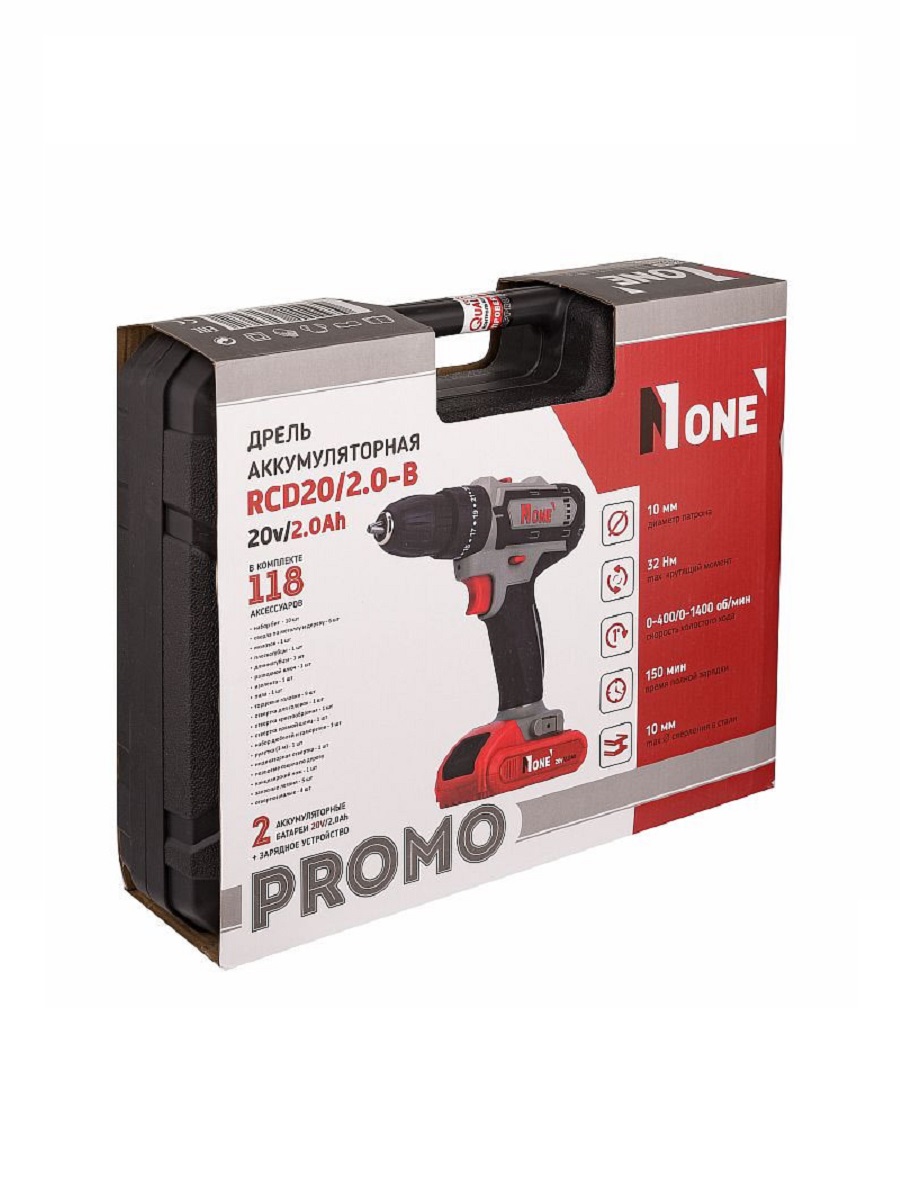 Аккумуляторная дрель-шуруповерт Number one RCD20/2.0-B-PROMO ударная С НАБОРОМ 118 предметов